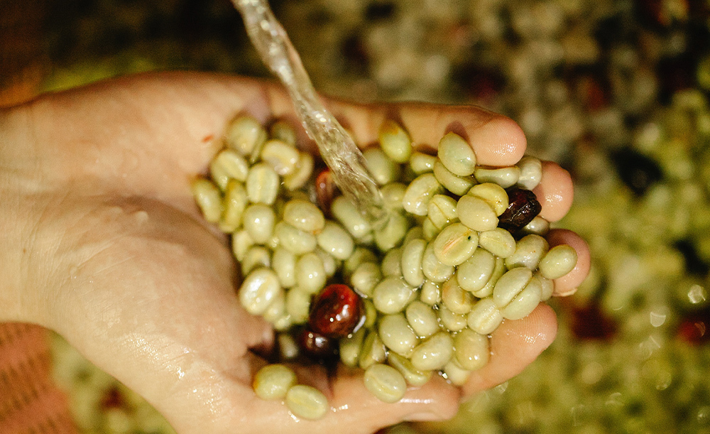 Все начинается с ручной сборки урожая на ферме. Для спешелти подходят только спелые зерна, которые вручную собираются с ветки. Зеленые зерна оставляют для дальнейшего созревания, а испорченные удаляют во избежание порчи остальных.